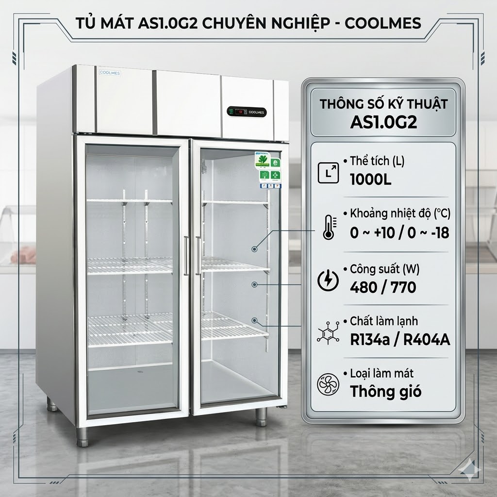 So sánh với các mẫu tủ khác, Coolmes AS1.0G2/AF1.0G2 nổi bật nhờ tích hợp công nghệ Inverter, giúp giảm tiêu thụ điện lên đến 30%, theo dữ liệu từ nhà sản xuất.  Tủ mát công nghiệp chất lượng  như thế này mang lại lợi ích lâu dài cho doanh nghiệp.